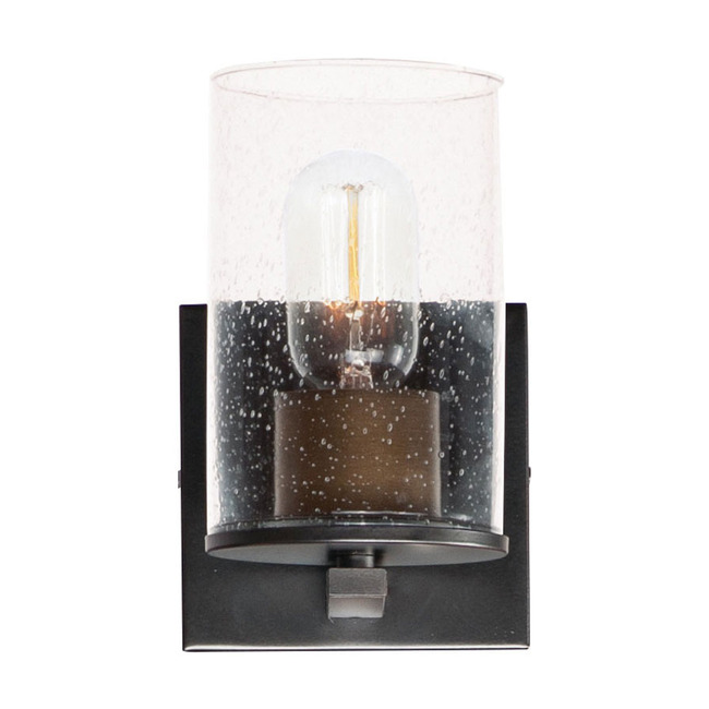 The Sleek Wall Sconce features a clean and simple design with a rectangular backplate and a slender arm that holds a Clear Seeded Glass shade.