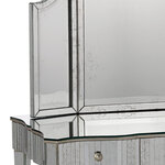 The Gilda Vanity Mirror exudes old Hollywood glamour with its mirror-on-mirror composition. Elegant curves and an antique mirror finish give it a vintage charm. The mirror comes with a metal cleat for hanging and a safety bracket for mounting onto a vanity. The vanity table pictured is not included and is available separately.