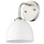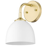 The Zoey Wall Sconce is proof that simple can be beautiful. This elegantly utilitarian series has the chic versatility to enhance the style of a variety of spaces. The smooth lines of this minimalist design pair well with transitional to modern decors. The cleanness of the contemporary look gives the fixtures a slightly industrial feel. The color of the shade's interior consistently matches the shade's exterior finish. The silhouette of the metal shade is a modern update to the classic dome shape. This wall sconce is perfect for hallways, bedrooms, or to use as an accent. Note: Not all options are available.