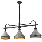 Perfect for homes with relaxed farmhouse dcor, Jasper has the comforting look of the olden days. The Galvanized Steel shades and contrasting, weathered Antique Black Iron finish call to mind humble homesteaders and rural living. Hang this fixture over an island or kitchen table for that touch of casual, vintage flare that you've been seeking.