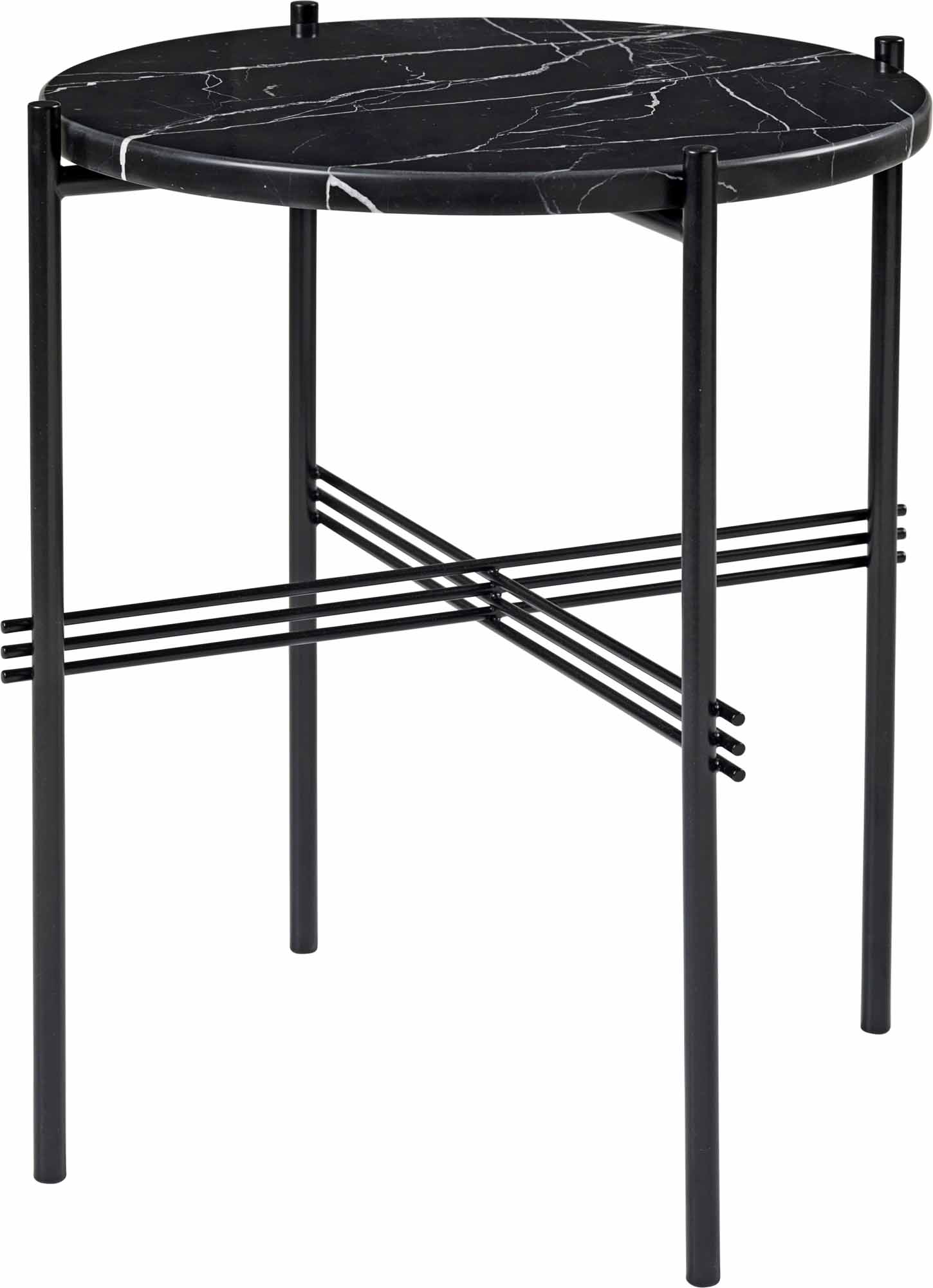 Round out the look of your living room or finished basement with the GUBI TS Round Side Table. This stylishly modern side table sports strong metal legs with cross detailing. The rounded marble or travertine top with lacquered metal frame make this table perfect for a wide variety of design schemes. Use this table to add depth and a new element to your favorite indoor space.