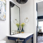 Put your stamp on your home's interior design scheme with the Kye Rounded Rectangular Mirror. This indoor hanging wall mirror is built with a thin metal frame and is tailor-made for use in a large power or bathroom space. The large size and refreshing exterior finish make this large-scale vanity mirror an eye-catching, game-changing home decor piece. May be mounted vertically or horizontally.