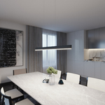 The Stealth Linear LED Pendant by AFX is a stylish contemporary fixture with a long, striking profile made up of strong lines with an understated vision. Centered on an integrated LED light with a white diffuser, it's framed in black metal with a squared mounting plate for a modern outcome. This fixture is powered with 120V connectivity for easy installation. Add depth and warmth to countertops, kitchen islands, dining tables, studios, and more. Includes a switch for selectable color temperature: 3000K/3500K/4000K.