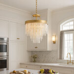Channel the intrigue and swanky feel of New Orleans with the Lafayette Chandelier. This luxurious chandelier boasts a mixed material design, incorporating hand-forged recycled steel and hand-carved wood. Plus, thanks to the premium optic faceted crystals, an element of sparkle emanates with every use. Reinvigorate your space with a large scale, glamorous chandelier.