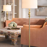 The Arthur Floor Lamp is a modern version of the classic candlestick design. The subtly curved body is topped with a tall drum shaped hardback fabric shade. Dual On/Off pull chains are located on the lamp socket.
