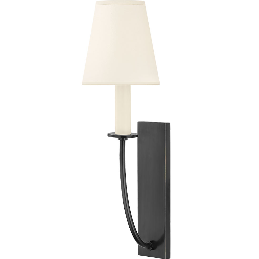 The Iantha Wall Sconce is simply elegant, with recognizable shapes, a classic silhouette and crisp, clean lines that define this design. Refined and minimal, a cream paper shade floats above a swooping arm attached to a rectangular backplate. Perfectly proportioned and beautifully balanced. Note: This fixture does not mount to a standard junction box - a 2x4 inch junction box is required.