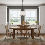 The Coco Pendant is a versatile fixture with a transitional design that will complement a variety of decor styles. The flat angular arms lend a contemporary, geometric edge, while the tapered linen hardback shade showcases a more traditional influence. The edges of the shade are finished with a black trim to complete the neat, clean-lined look.