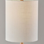 Illuminate your room with the simple, natural style of the Maddox Table Lamp. The table lamp features a tripod base in antique brass supporting a slender light oak wood stem and is topped by a tall drum shade made of white textured fabric to softly diffuse light. Easily operated by a pull chain on/off switch.