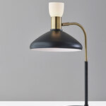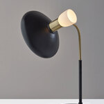 The Patrick Desk Lamp offers versatile task lighting while blending industrial, modern chic, and mid-century modern design for the perfect addition to your desk or side table. Featuring a mix of metal finishes, the round black base leads to a black tube that transitions to a slim, antique brass stem. For a distinct look and versatile lighting options, the desk lamp features dual lampshades, the main light in black metal and the smaller lampshade is constructed of frosted glass.