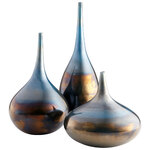 The Ariel Vase is beautifully contoured and given a gorgeous genie silhouette in iridescent blue and gold tones. The glass table vase captures attention on its own or as part of a larger ensemble with additional sizes.