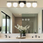 The transitional design of the Vivaldi Vanity Light will enhance mid-century to modern furnishings on a note of luxury. The metal frame extends into horizontal arms, with globe lights set below it.