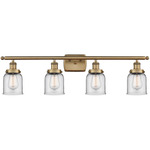 The Ballston Urban Bell Bathroom Vanity Light features a a row of glass, bell-shaped shades supported by a sleek horizontal bar and rectangular backplate. The fixture's clean-lined design allows it to complement a wide range of interior decor styles, particularly contemporary settings.