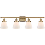 The Ballston Urban Cone Bathroom Vanity Light features a a row of conical shades supported by a sleek horizontal bar and rectangular backplate. The fixture's clean-lined design allows it to complement a wide range of interior decor styles, particularly contemporary settings.