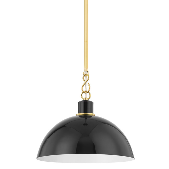The Camille Convertible Pendant draws her best features from French design. Aged brass details pop against the glossy black metal dome outfitted with a white interior. From an industrial form to Mid-century styling, Camille may be vintage inspired but was certainly made for modern homes. Can be converted from pendant to semi flush mount.