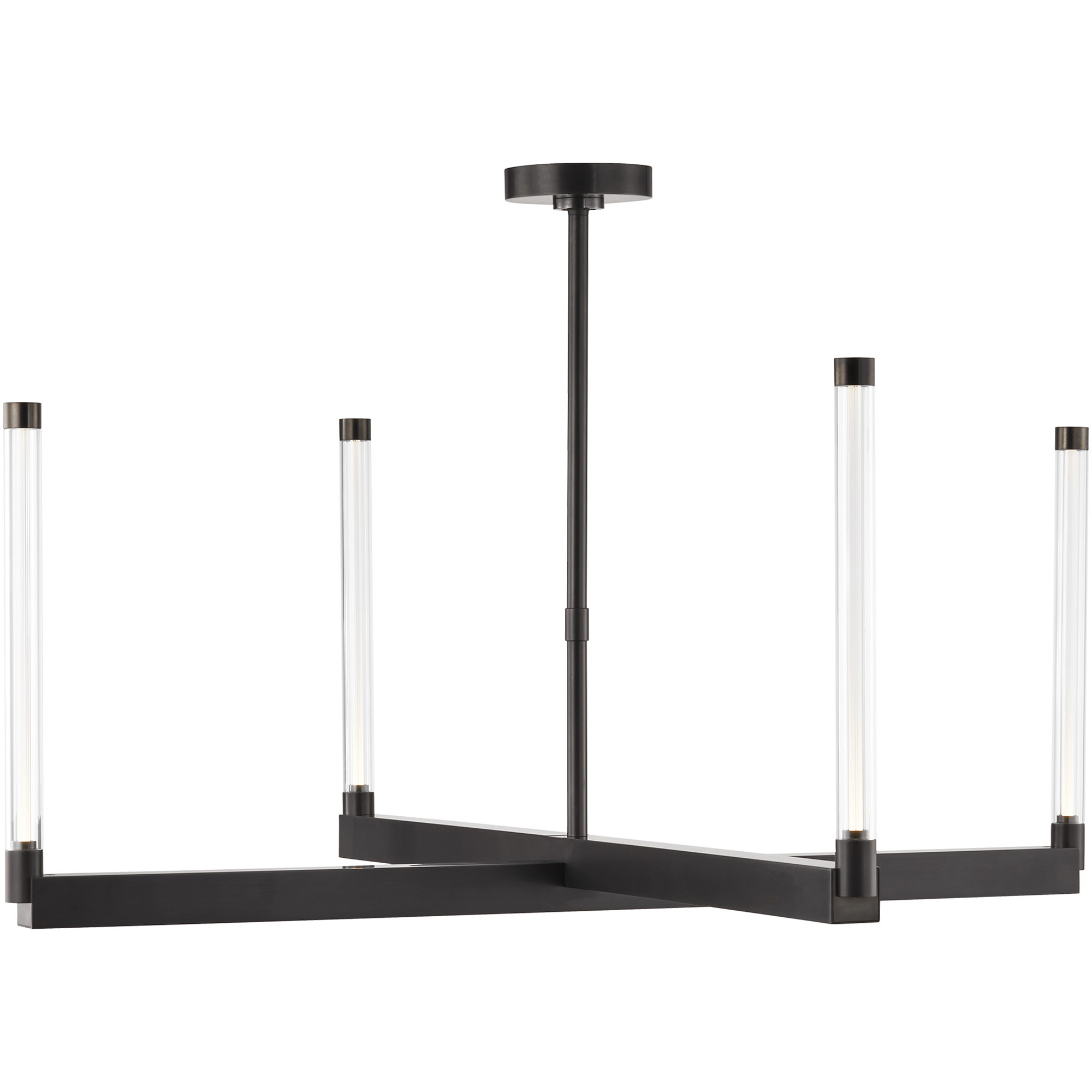 The simplicity of tubular light is displayed in an angular, geometric arrangement on the Phobos Chandelier, a striking contemporary piece for your space. Laser-etched light guide channels encased in borosilicate glass diffuse the light to provide ambient illumination for foyers, dining areas, and living rooms. 120V: TRIAC and ELV dimmable. 277V: 0-10V dimmable.