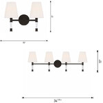 The Hanover Bathroom Vanity Light offers a contemporary mixed-material aesthetic for your bathroom or powder room, with its simple metal frame and clear acrylic stems complemented by tapered milk glass shades.