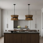 The Thurlo Pendant embodies modern elegance and bohemian chic, with its cinched drum silhouette accented with a metal band, and natural abaca paper rope hand-wrapped around the frame. The abaca filters the light and evokes a tropical beach, creating a relaxing, inviting ambiance.