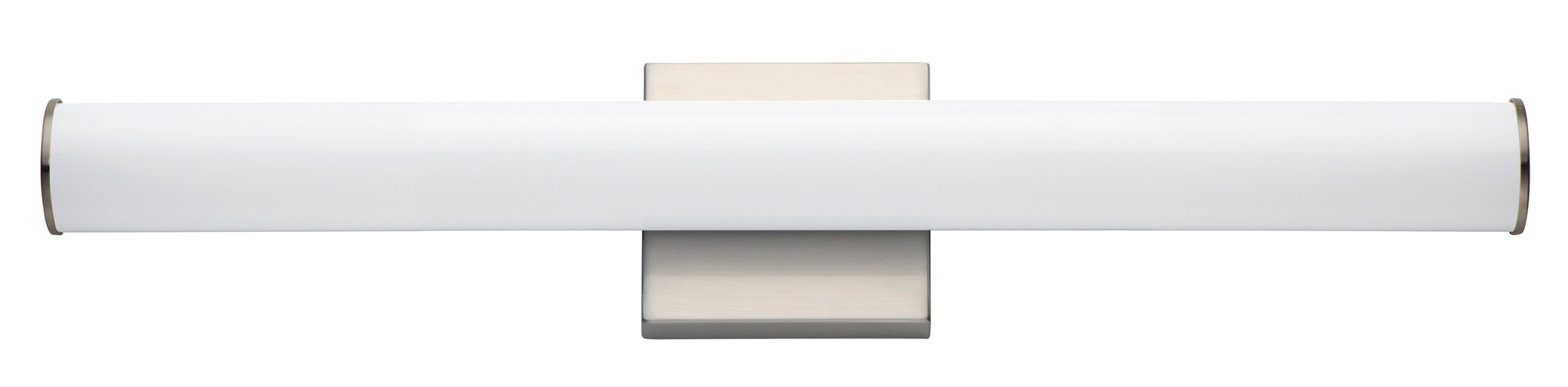 The Rail Color Select Bathroom Vanity Light is a sleek contemporary piece, that works well in any style room. Features a White acrylic shade with end caps and a backplate, casting warm shadows across your space. May be mounted horizontally or vertically.