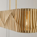 Stunning from every angle, the Archer Island Pendant brings unique sculptural style to any space. Archer features artisan-crafted slats of mango wood that create the sensation of motion in a visually intriguing wave, grounded by a Matte Black metal frame.