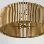 Featuring elongated vertical lines, the sculptural style of the Archer Pendant is stunning from every angle. Artisan-crafted slats of mango wood create the sensation of motion in a visually intriguing wave grounded by a Matte Black metal frame.