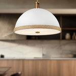 The Doral Pendant brings a coastal update to the classic dome shape. The smooth steel dome features a bottom rim of natural rattan and is complemented by glass diffuser, casting warm shadows across your room.