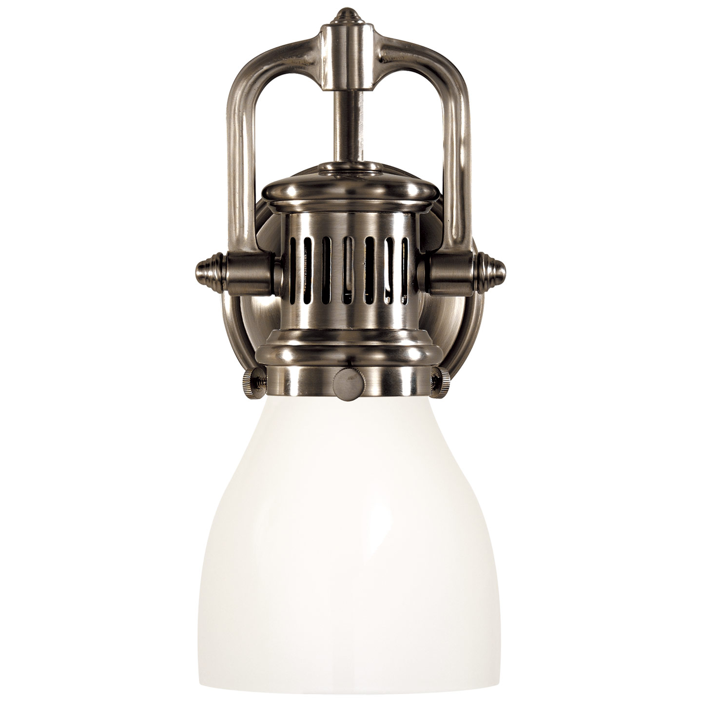 The Yoke Wall Sconce exudes vintage character through its hanging light design, curved arm and industrial-style hardware detailing. With its wide range of finish options, you can find just the right look to complement your space.