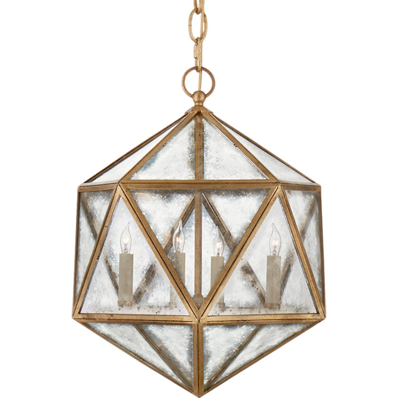 The Zeno Pendant adds vintage appeal to your space with its faceted shade made of clear Antique Mirror glass panels. A traditional-style candlestick cluster is visible inside and emits a warm ambient glow.