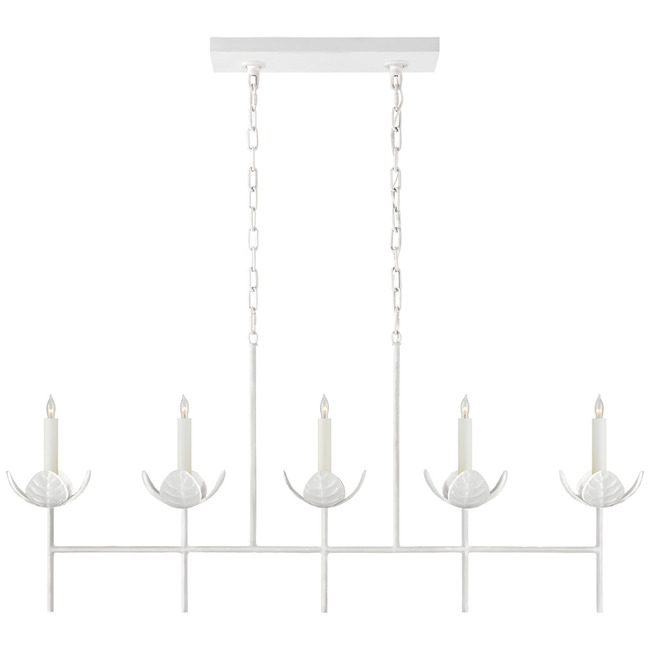 The Illana Linear Chandelier brings a lush artistic look to your interior space. The sculpted, blooming flowers, with hand applied finishes, hold candlesticks that cast a warm glow of light across your room.