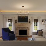 The Belfair Chandelier brings a refined elegance to you interior space. The Shaker aesthetic simplicity of the frame holds traditional candelabra inspired lights, casting warm shadows across your room.