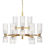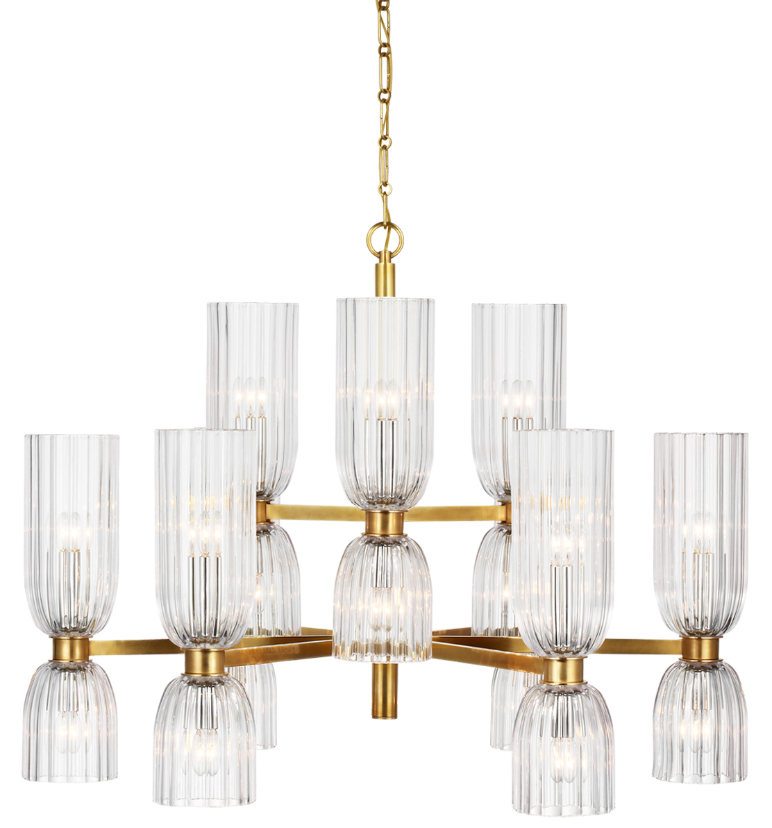 The Asalea Chandelier brings a contemporary vibe to a midcentury modern French design. The smooth metal body is complemented by elegant ribbed glass that casts warm light across your room.