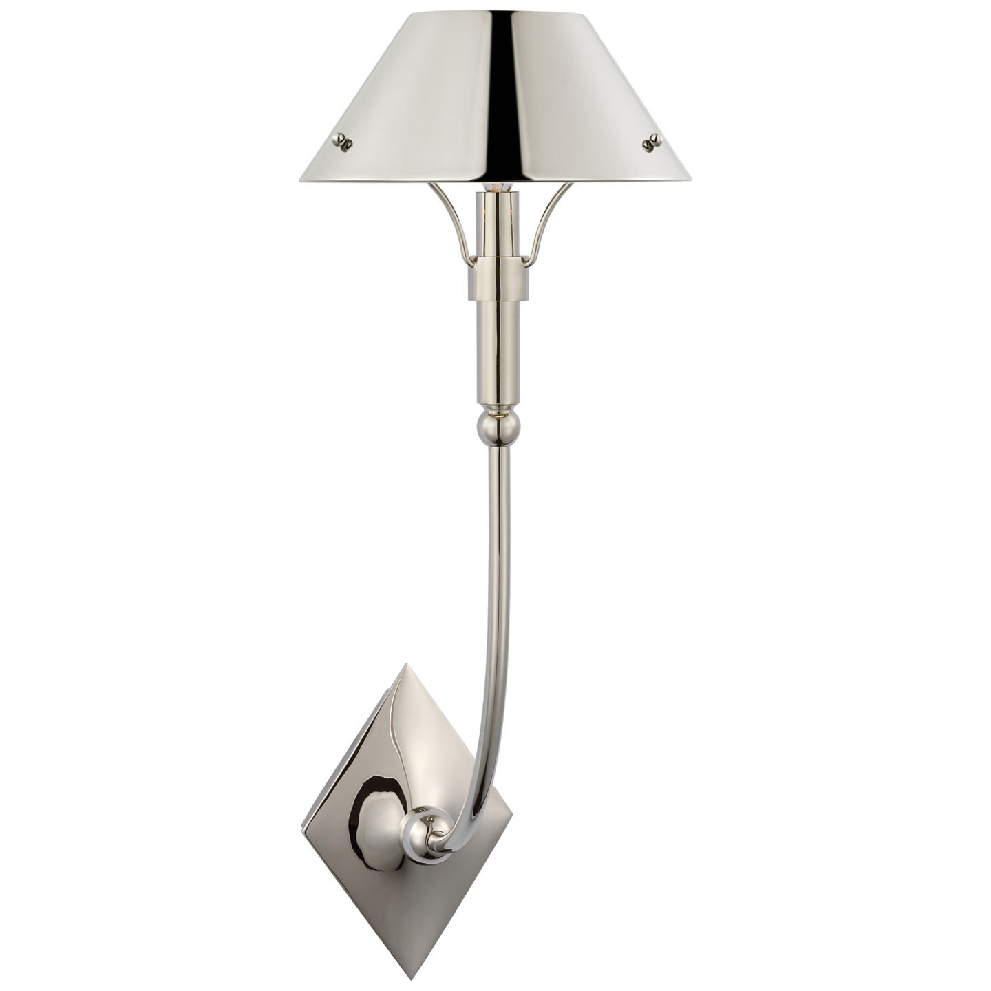 The versatile Turlington Wall Sconce strikes a refined silhouette with its elongated arm and flared shade. Whether used alone or in groupings, its sleek aesthetic elevates your space with modern style.