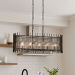 The Park Row Linear Pendant is sure to bridge the gap between functionality and inspired design. The interwoven cables create a repeating pattern that we have wrapped around and support modern clear fluted, recycled glass rods.