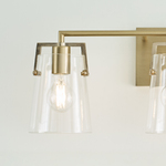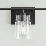 The Crofton Bathroom Vanity Light brings a clean, modern style and a bright burst of light to your interior space. A sleek rectangular backplate is complemented with a clear flared glass shade that casts warm shadows across your room. May be mounted with the glass facing up or down.