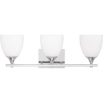 This light fixture is a beautiful addition to my guest bathroom. I love the milky glass sconces, the light output is a soft white that compliments the other fixtures in my bathroom. Installation was also a breeze.