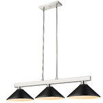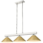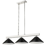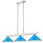 Straight line inspired detailing defines this beautiful Cobalt Linear Metal Cone Shade Chandelier. This Chandelier would be equally at home in the game room, or anywhere else in the house needing a touch of modern charm. Adjustable rods are included to ensure the perfect hanging height.