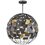 Space-inspired forms pepper Hiroshi Koshitaka's lighting designs orbs are nods to planets and spirals represent the swirling universes that spin in far-away realms. The Moon Night Orb Chandelier is one of the former; the steel ribs in a Hiroshi Gray finish holding metal squares in the same finish intermingled with astutely placed gold confetti-like squares. This gray chandelier has an environmentally friendly slant, as the shapes welded to the frame are made from scrap metal that would have ended up in landfills. This move of staying mindful is infused in Koshitaka's soulful outlook, which he manifests in each of his designs.