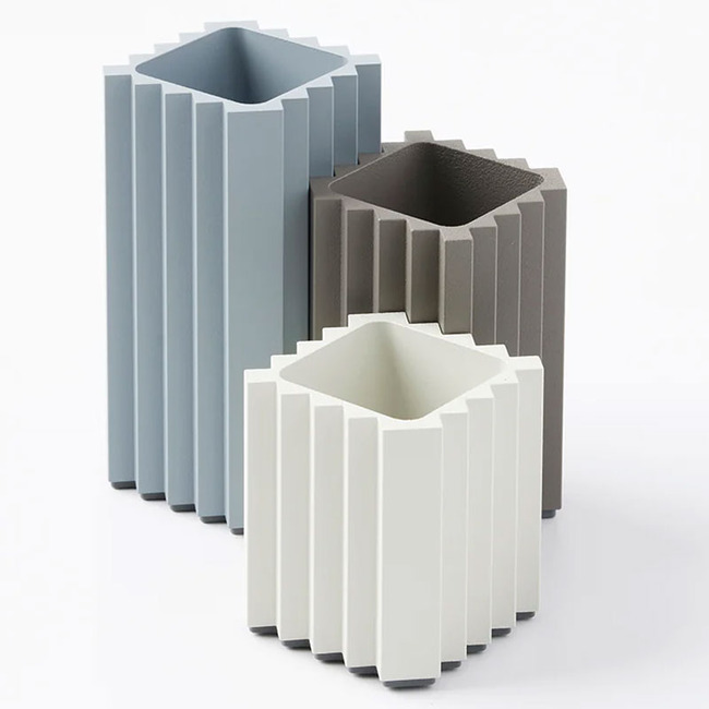 Whether used as a planter set or desk accessory, Tess Mini Storage Set of 3 makes a display of tiny greenery or your best work tools. Inspired by our original full-size planter series, Tess, this miniature set of three vessels was designed to nest together in a configuration only limited by your imagination. Removable rubber bottoms for water resistance and easy cleaning. Designed, molded, and assembled in the USA