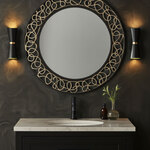Inspired by the imaginative and surprising artwork found in century-old Japanese art books, the Scribble Mirror takes things a little more Pop art. Sure to grab your attention in any space, Scribble features free-form curves and captures them in a circular framework to allow them to stand out in an ideal combination of art form and function. Scribble takes on an almost stream of consciousness style where there is no beginning or end, but an infinite flow just like the creativity of the artists that inspired it. This collection is embellished by a silver gold finish applied to the scribbling itself.