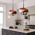 In 1856, pioneering British architect and designer, Owen Jones, literally wrote the book on design in the machine age, The Grammar of Ornament. The Patchwork Pendant is inspired by Jones's seminal work which was lavishly illustrated in vivid chromolithographic color. Patchwork elevates the Greek decorative patterns and color tones featured in his design treatise, to create a cleaner, modern sensibility for the 21st century. Features hand-painted matte black and brass plated accents.