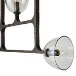 The Dillon Linear Chandelier offers Smoke glass globes and shades that make a playful mix on a sculptural chandelier. Two globes and two shades are elegantly displayed on an L-shaped support of chattered English bronze iron. Interlocking into an artistic form, this linear style was designed to illuminate longer surfaces.