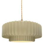The Radiance Pleated Tier Pendant brings a bold decorative look to your interior space. The twisted Beige cable holds a finished top with a tiered, pleated ceramic shade that casts warm shadows down, across your room.
