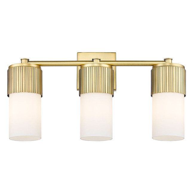The Bolivar 3 Light Bathroom Vanity Light brings a stately, architectural look, enhancing your interior space. Its smooth arms with ribbed holders has three cylindrical handblown glass shades that diffuse warm, inviting light and casts gentle shadows throughout your room.