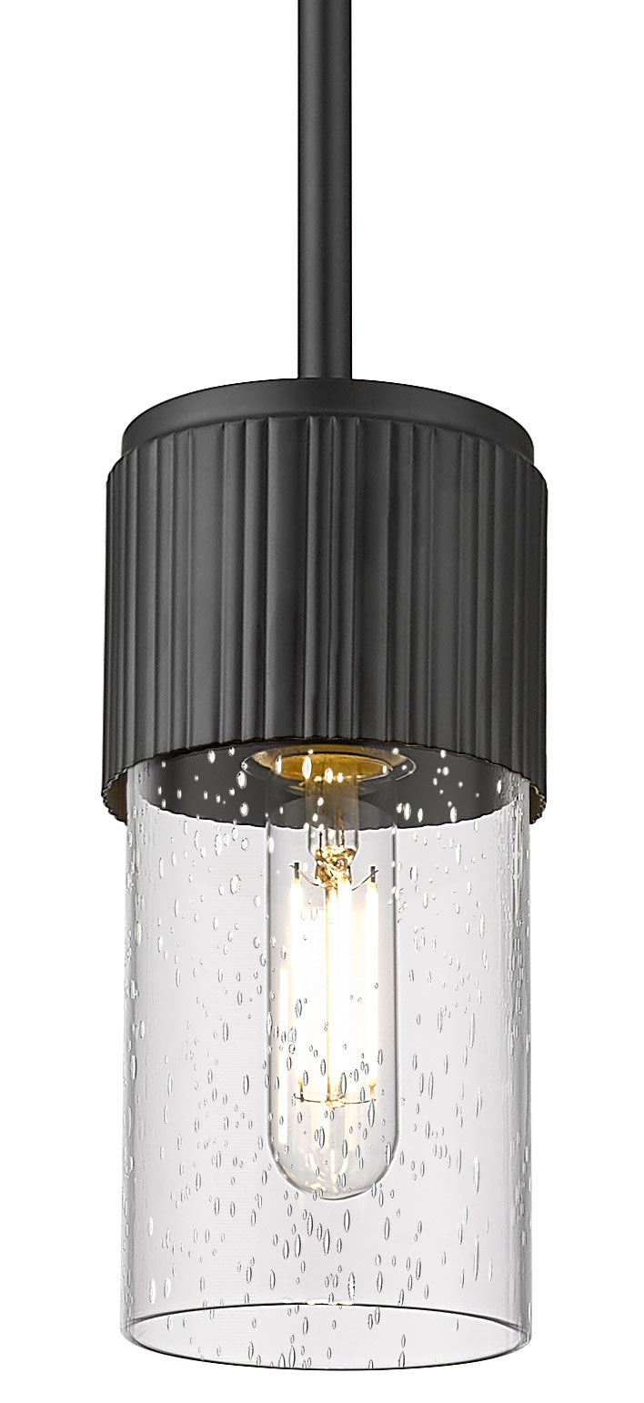The Bolivar Small Stem Pendant brings a stately, architectural look, enhancing your interior space. Its ribbed body holds a cylindrical handblown glass shade that diffuses warm, inviting light and casts gentle shadows throughout your room.