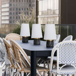 The Central Valley Portable Table Lamp is a cute little light, perfect to move as you desire. An overscale white linen shade tops the weighty marble base, with the shape of the shade following the exact angles of the stone. Charge time of 3.5 hours. Battery life is dependent on the brightness level. Touch dimmer is located on the top of the shade. Tap to turn On/Off and hold down to dim.