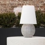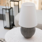 The Ulsterville Rechargeable Table Lamp brings a simple charm to your space. The spherical ceramic base is complemented with an oversized linen shade. Charge time of 3-5 hours. You may use the lamp while it's charging. Light life per charge is dependent on the brightness level. Includes USBC-C cord and wall plug. Tap the Touch Dimmer of the lamp to turn the fixture on and off. Touch and hold to dim and adjust the brightness.
