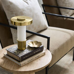 The Sefton Rechargeable Table Lamp brings an architectural look to your space. This dimmable accent lamp combines an alabaster tube with a machined metalwork base for a high style statement. The cylindrical shade completes the dynamic design. Charge time of 3-5 hours. You may use the lamp while it's charging. Light life per charge is dependent on the brightness level. Includes USBC-C cord and wall plug. Tap the Touch Dimmer of the lamp to turn the fixture on and off. Touch and hold to dim and adjust the brightness.