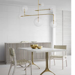 The Linnea Linear Chandelier brings a bold minimalism to your interior space. The smooth slim arms are complemented by varying sizes of glass globes that cast warm shadows across your room. Sloped ceiling compatible up to 30 degrees.