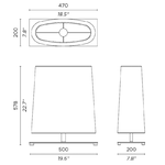 The Ovale Table Lamp features a tall, wide fabric shade to provide softly diffused illumination. The tapered shade is oval-shaped at the top and bottom with clean lines to emphasize its geometric shapes. The lamp is supported by a sleek rectangular metal base to complete the neat, orderly look. On/off switch located on cord.