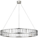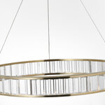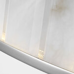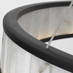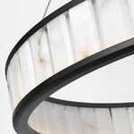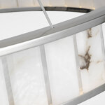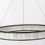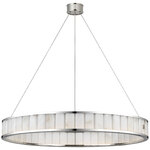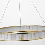 The Iterna Chandelier brings an elegant beauty to your interior space. The smooth ring frame holds panels of Crystal or Alabaster that reflect warm shadows across your room.