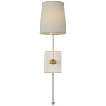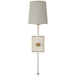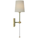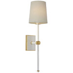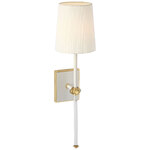 The Lucia Cordless Wall Sconce blends a classic sconce silhouette with modern finishes and a distinctive clear glass stem. The tapered linen shade emits a warm glow, providing soft ambient illumination across your area. Remove cordless light module from lamp and charge using provided USB-C cord. Touch dimmer is on the light module to adjust between high, medium, and low settings. Includes a USB-C to USB-A adapter and charging plug.